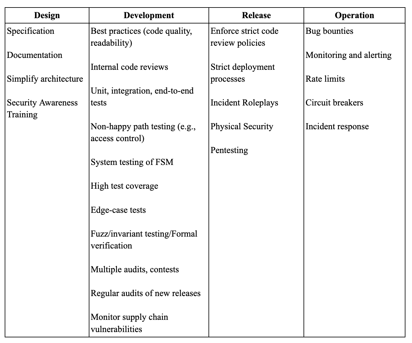 This requires security to cover the entire system. It must include design, development, deployment, and live operations. A final audit alone is not enough. If prevention or response is missing, small issues can quickly escalate into serious incidents once economic incentives are in place.